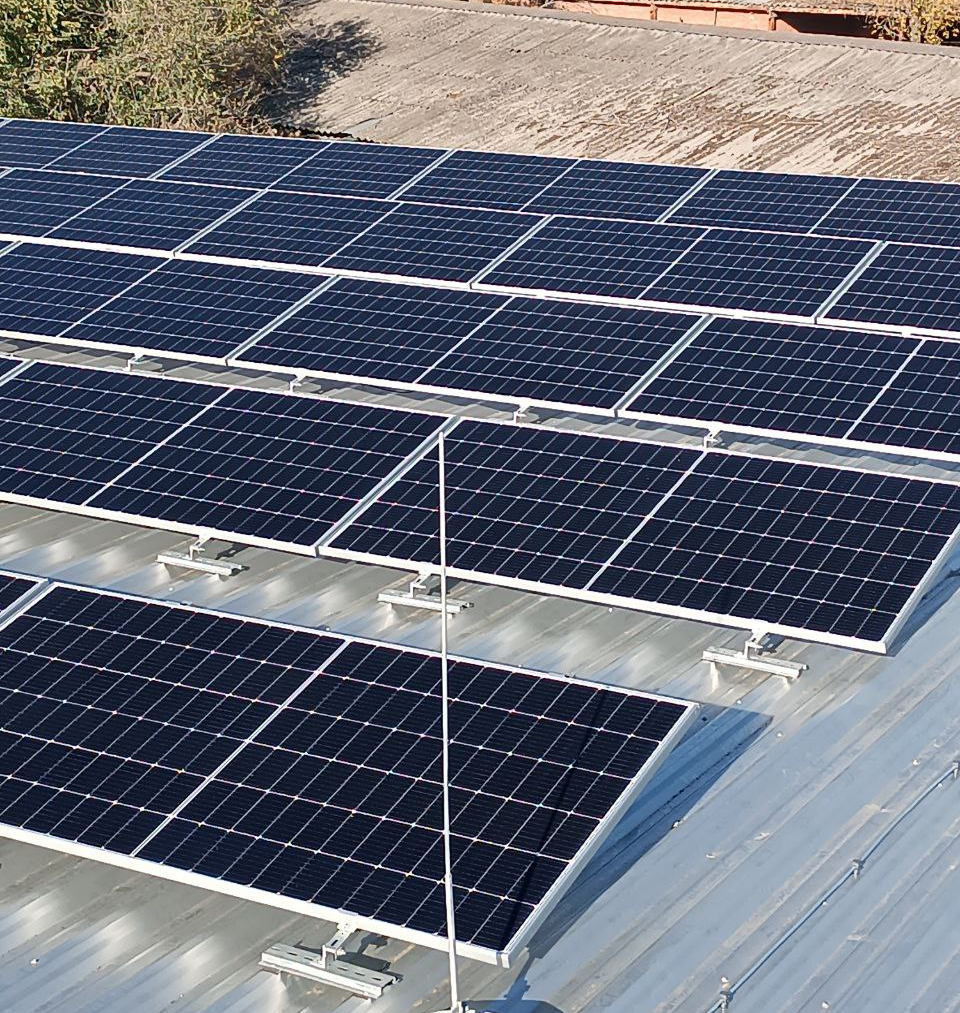 The 100 kW solar power plant is installed on the roof of an industrial enterprise. The factory galvanized solar module mounting system is used on an individual order. The project envisages work for own consumption. This gives the customer electricity savings, as well as additional capacity in cases of the introduction of limits. The used equipment enables further operation of the solar power plant using the Net Billing system and possible retrofitting with a device for compatible operation with a diesel generator. At the current cost of the electricity tariff for the enterprise, the SPP payback is 3 years.